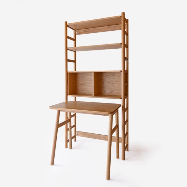 上記よりも若干軽やかな印象のシェルフデスク。